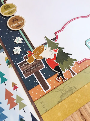 From there you add your photos and your embellishments on top of that fold. I love when they look like they are sort of spilling out. For my layout I went for the cute little town scene using the Chipboard Sheet and Ephemera so layered a row of homes likes a little Christmas Village along the bottom of my photos.