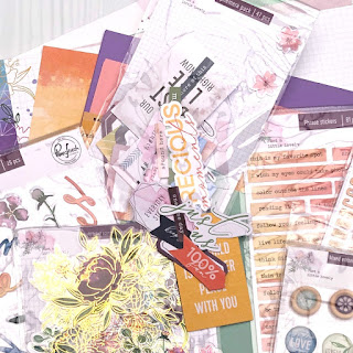 For my first layout, I was inspired by the Floral Ephemera - 58 pieces of floral goodies in this one little pack of ephemera! I wanted to create a layout that sort of spilled out these beauties.
