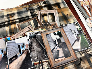 I find for home renovation the photos are not great but the story is - it’s fun to look back and remember what that wall or room looked like. So I went with a number of small 2x3 photos to show the progress of turning an outer wall into a new entry for the mom-in-law suite. I used a frame die cut to highlight my favourite photo of the bunch.